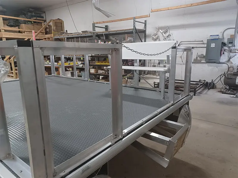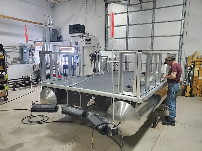 Pontoon construction and frame design are based on customer specifications to include loading, deck size, lifting, or special equipment mountings. Materials are marine-specific and commercial grade.