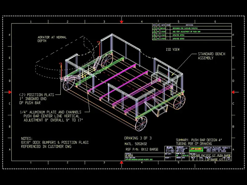 APP-Marine offers complete utility barge design and production services. With over 50 years of aluminum pontoon boat experience, we bring our team of in-house engineers and production specialist together to support our customer projects. Services include CAD prepared drawings, technical specifications, and custom engineering solutions. Our service barges range from 8x8 to 8x14 with lifting, pushing, and towing. The following pictures provide an overview of the process.