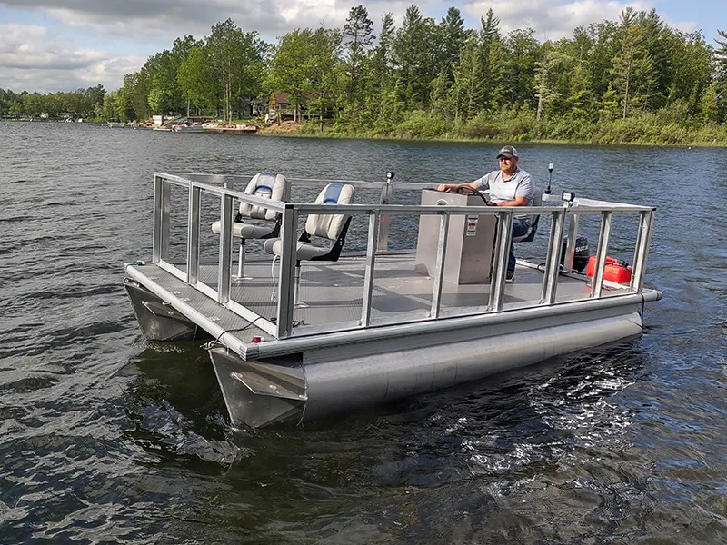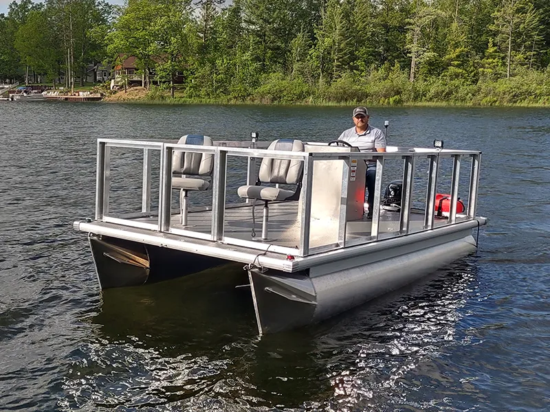 Maximize your operational efficiency with the UTL-14R™ Commercial Pontoon Boat, engineered for durability and versatility in demanding environments. Its spacious deck and quick-release railing system make it ideal for transporting materials and equipment, ensuring you get the job done right.
