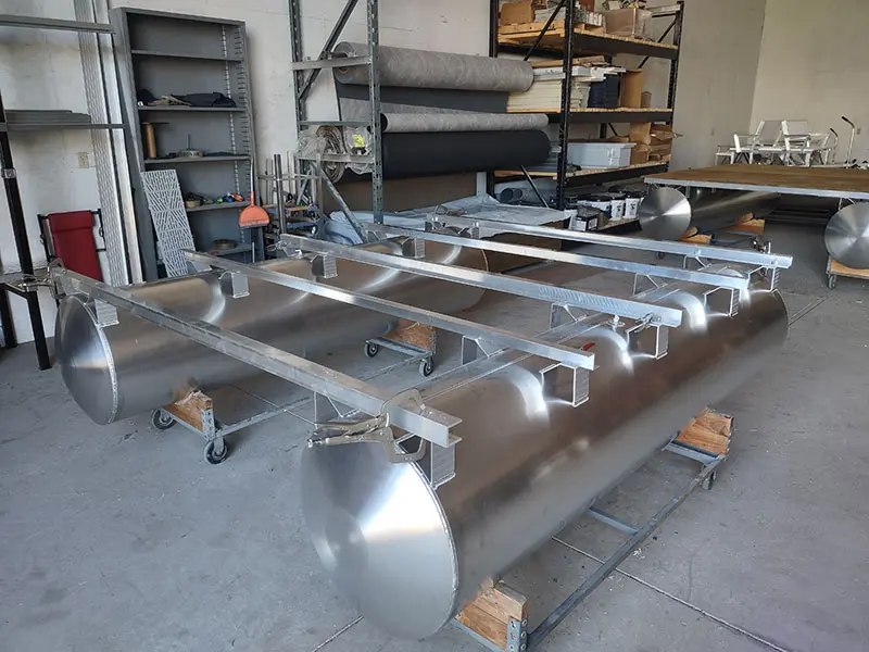 Pontoon construction and frame design are based on customer specifications to include loading, deck size, lifting, or special equipment mountings. Materials are marine-specific and commercial grade.